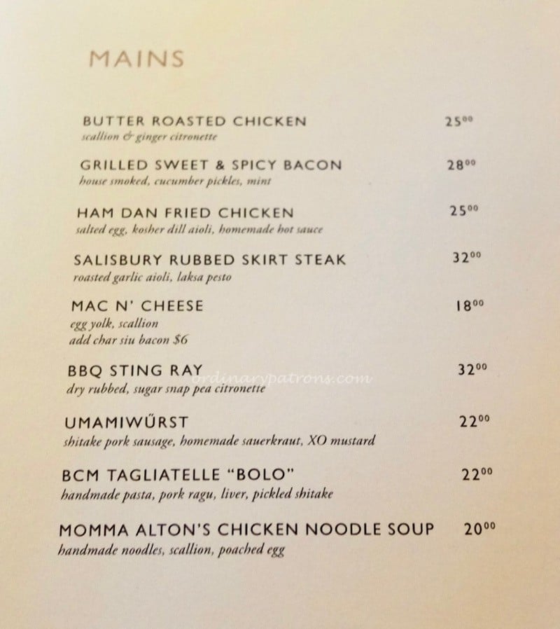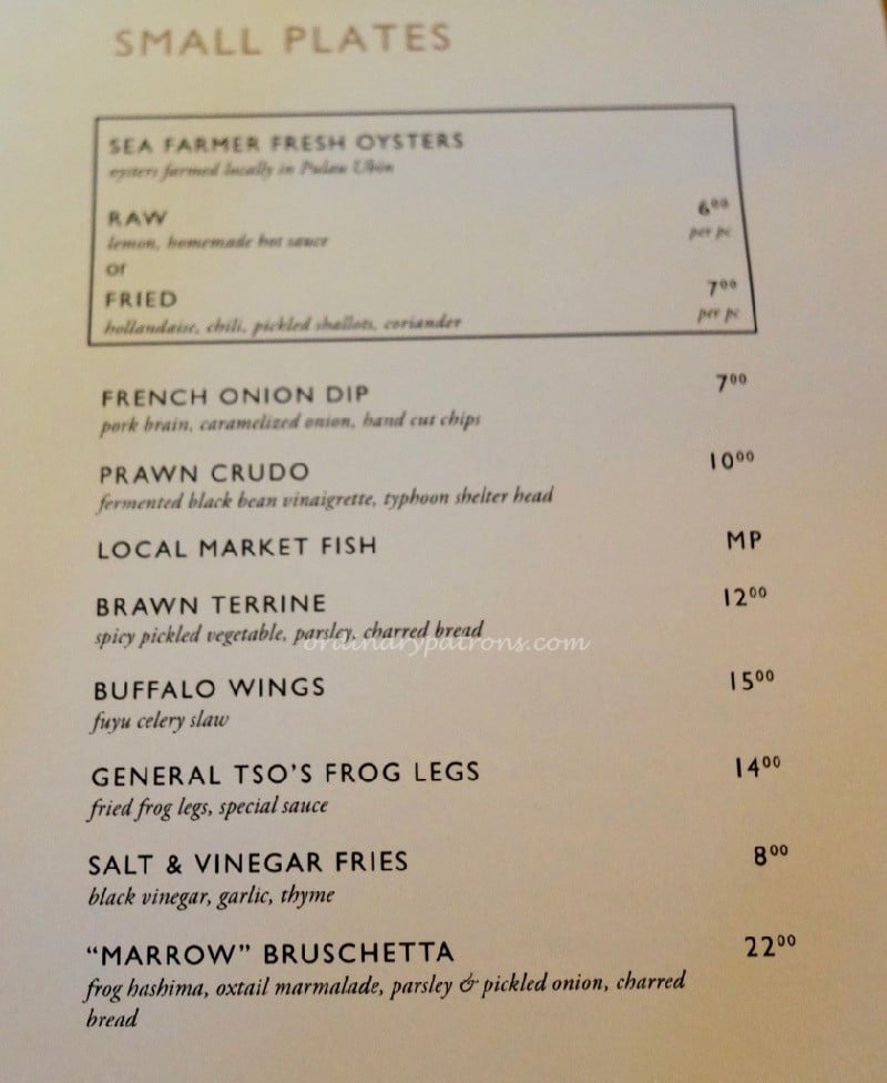 The Guild Singapore Food Menu