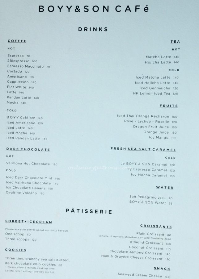 BOYY & Son Cafe is a stylish cafe in Gaysorn Village, the same building the houses the Paste Restaurant that we wrote about yesterday. It is connected to the BOYY Boutique which is also a lovely place for fashionistas. Both places exude an atmosphere of calm and peace with their plain, minimalist decor.
