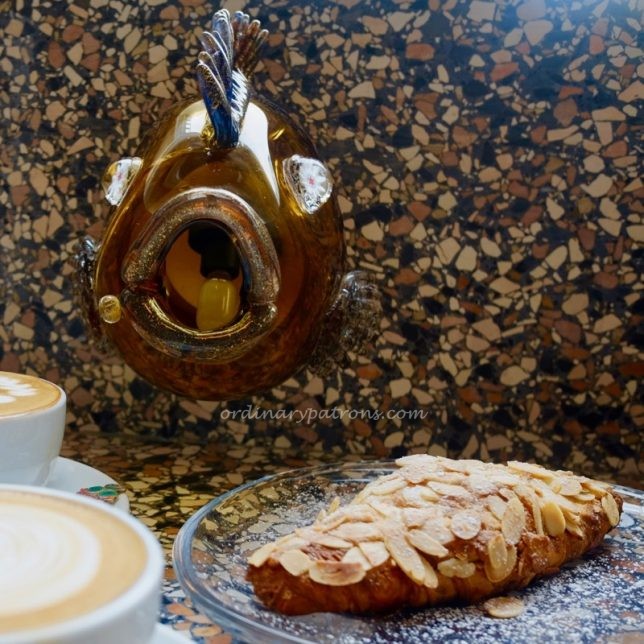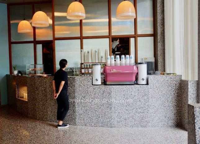 We did not really need to eat anything but decided to check out BOYY & Sons Cafe as it looked so irresistible. The entire floor, service counter, tables and seating booths had a uniform retro finish. I believe they call this terrazzo – bits of marble embedded in concrete and smoothed into a flush marble-like surface. This flat homogenous look was playfully punctuated by splashes of colour in the form of the pink La Marzocco FB80 coffee machine, a circular wall aquarium and glass fish heads at each table. Everything was simple yet so beautiful.