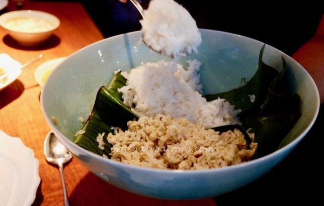 Rice was offered in two versions, the regular white steamed rice and a green one. We tried both. The green one looked more interesting but we could not tell the difference in terms of taste. The rest of the dishes were then served at the same time. Soups and main courses were meant to be eaten with rice, similar to what we do at home.