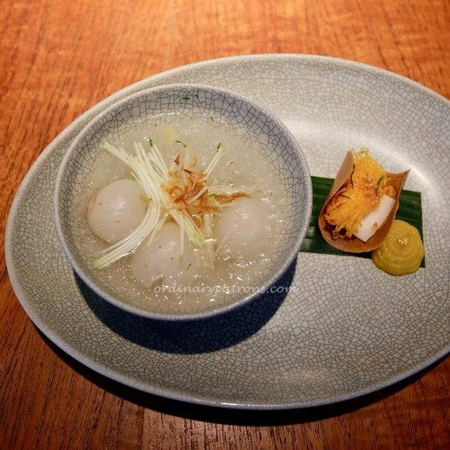 After the amuse bouche (above), we were served with both canapés on the menu. These are the descriptions on the menu :-