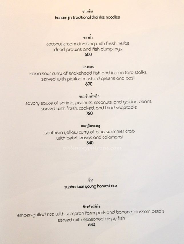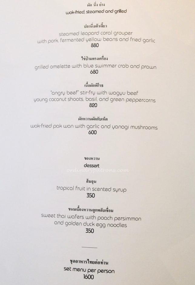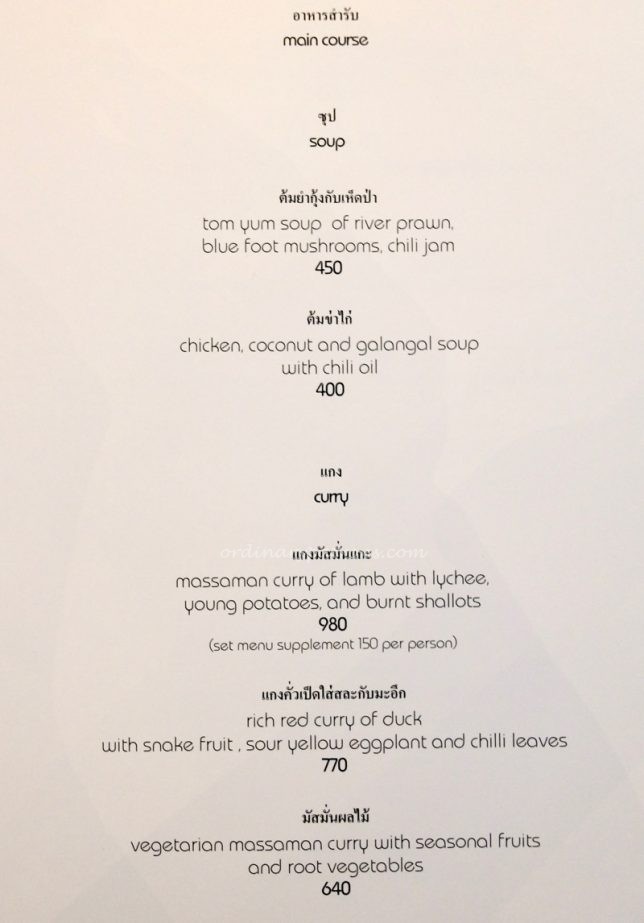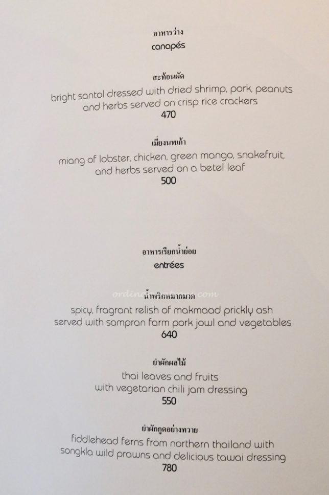 Nahm Bangkok is a restaurant that shows up in many lists when we searched for places to eat using the phrase”best Bangkok restaurants”. They certainly have received many awards such as Top 10 restaurant in Asia in the annual San Pellegrino and Acqua Panna list, a Michelin star etc. They do not do so well on TripAdvisor, being rated a lowly #559 of 10,909 restaurants in Bangkok. We suspect the relatively high prices may have something to do with that. Nahm Bangkok serves traditional Thai cuisine – nothing avant-garde or modern. According to their website, “Chef Pim Techamuanvivit, who heads the restaurant, wants diners who visit nahm to feel as though they’re dining in the home of sophisticated Thai friends“.