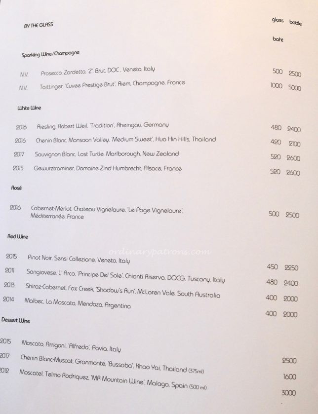 The Nahm Bangkok menu contains a reasonable range of dishes. They are recognisable Thai dishes except that they contain some ingredients that we seldom or had never come across. There is a set lunch menu (1,600 Baht per person) whereby diners can select items from different sections of the menu. That sounded like a sensible way to try many different things and so we opted for the Nahm set lunch. Here are pictures of the Nahm Bangkok Menu for lunch and a page from the wine list.