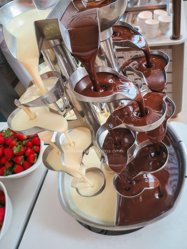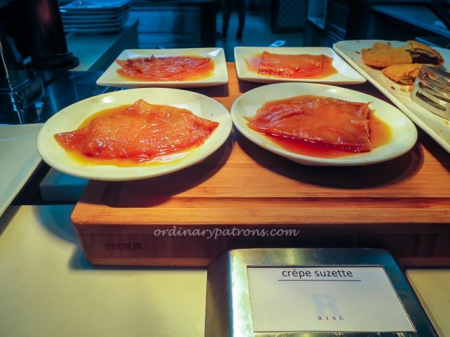 In addition to the usual cakes and tarts, there is a good spread of nyonya kuehs. There is an impressive chocolate fondue fountain. The standout items for us are the crepe suzette and bread pudding.
