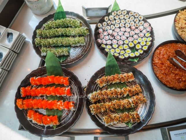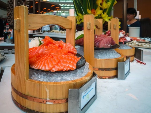 One of the favourite stations of Singaporean buffet enthusiasts, the sushi and sashimi station, is well stocked and constantly replenished.