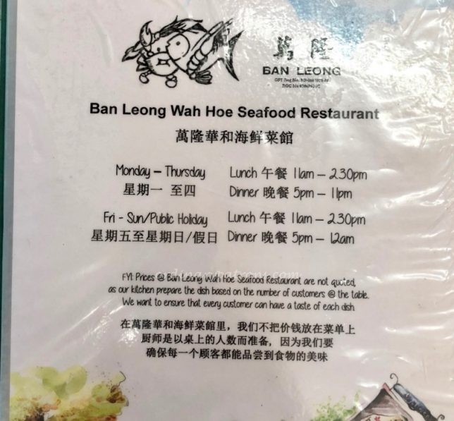 Ban Leong Wah Hoe Seafood Restaurant Menu