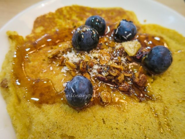 The ingredients were sufficient to make 3 regular size pancakes. It was not too difficult to follow the cooking instructions but it was not easy to cook a pancake of the ideal size and thickness. As you can see from the photos below, it was hard to make the pancakes look round and picture perfect.