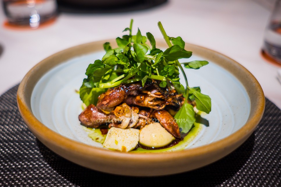 The warm baby squid was another appetizer with a pedestrian name but turned out to be very well prepared. The baby squids were the size of those we often see in seafood restaurants. But instead of hard crispy specimens that had their life deep-fried out of them, those were more gently treated. They were soft and still tasted like squid.
