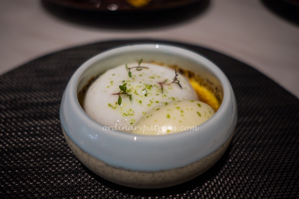 The desserts “frozen salted chocolate peanut” (above picture) and “sea coconut brûlée” (below) ended our lunch on a sweet note. These were delightful and not run-of-the-mill desserts which are often produced for set lunches.