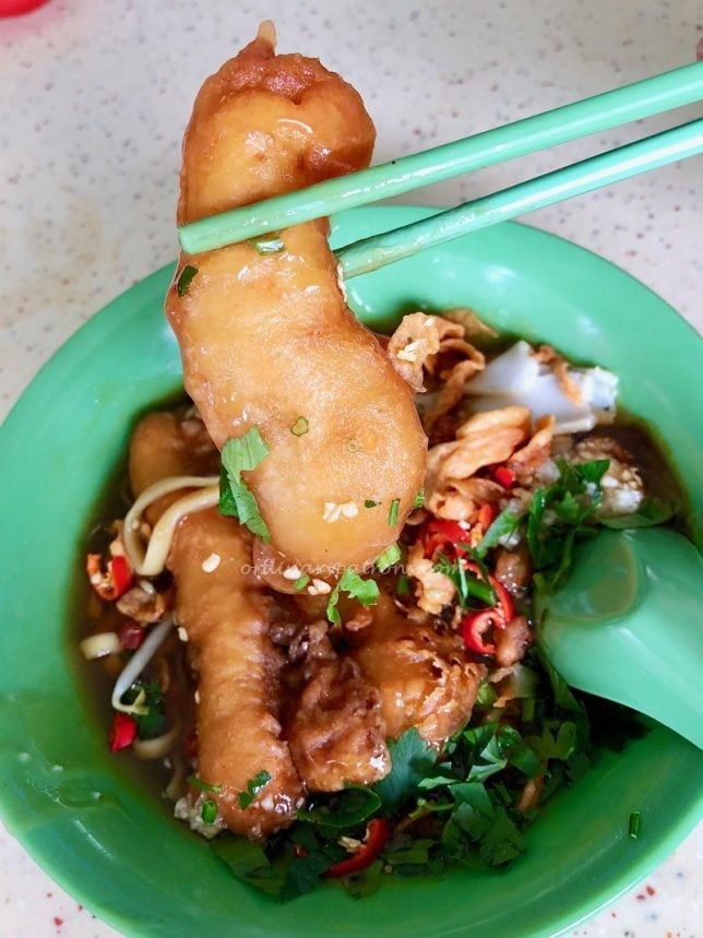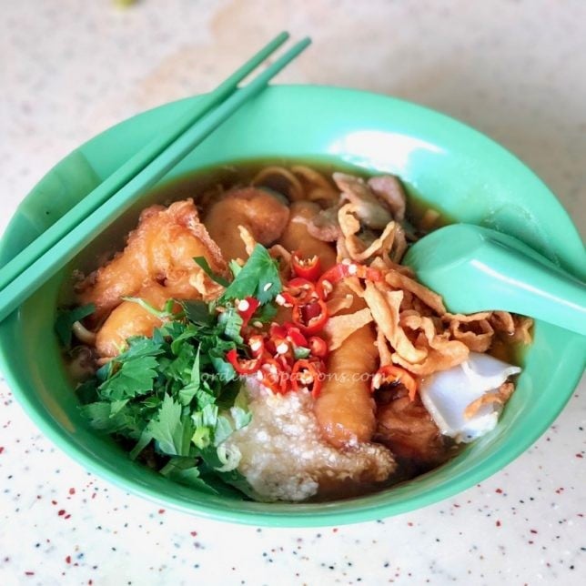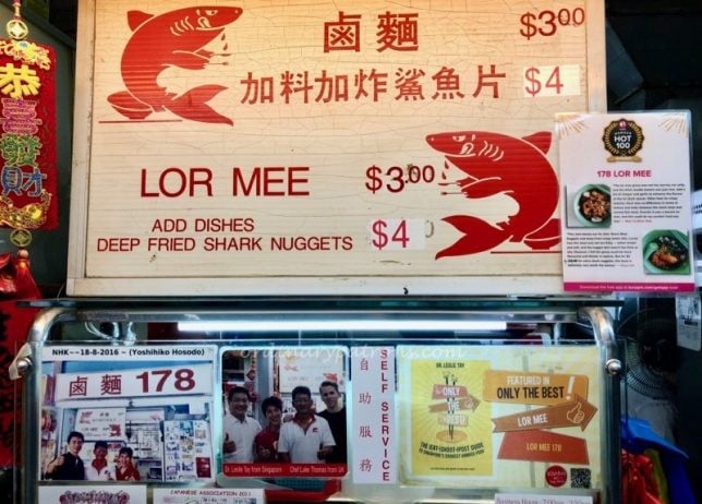 Lor Mee 178 has a Singapore Michelin Guide 2018 “The Plate” award. This award is said to recognise the following achievement: “Fresh ingredients, carefully prepared: a good meal”. We saw that the queue was rather short that day with only a few people in line. There are two lor mee options – either $3 or $4. The latter is for noodles with their famous deep fried shark meat nuggets. We opted for the $4 version as the shark meat topping is one of their selling points.