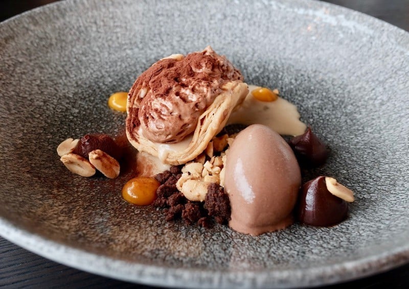 Now you get to see why the 3-course option makes sense at the SKAI Restaurant. We chose the Peanut Butter and the Earl Grey Parfait. They were both very good but different. The dessert dish named Peanut Butter contains dark chocolate, banana, puff pastry, peanut butter and other things we cannot identify. Each mouthful contains a different bundle of flavours. It is a strong, powerful kind of dessert.