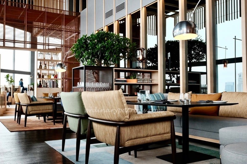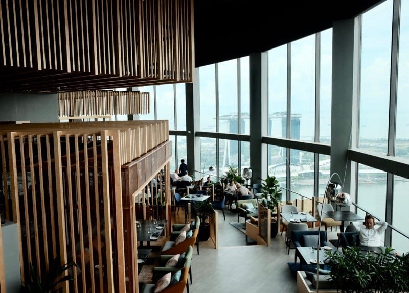 The tables along the window get an unblocked bird’s-eye view of Singapore. Pick either the Singapore River view or the MBS view. Â These are regular tables with upright chairs. Personally, I was glad we did not get a window seat as the glare from the afternoon sun may get tiring after a while. It might be different at dinner time though.