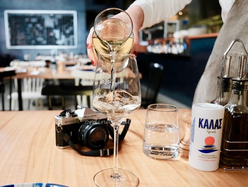 For drinks we had a Mythos beer and wine from the tap. ย Wine aficionados will probably shriek with disgust at the thought of wine dispensed from a tap. ย There were two options – pinot noir and sauvignon blanc. We tried the latter (A$19 for 500ml carafe). ย It was nice and good value for money.