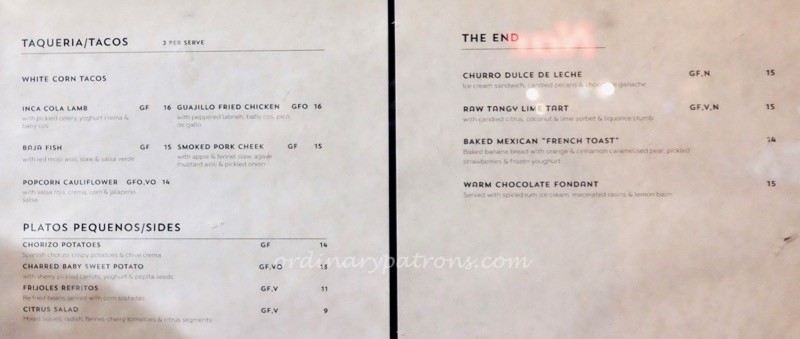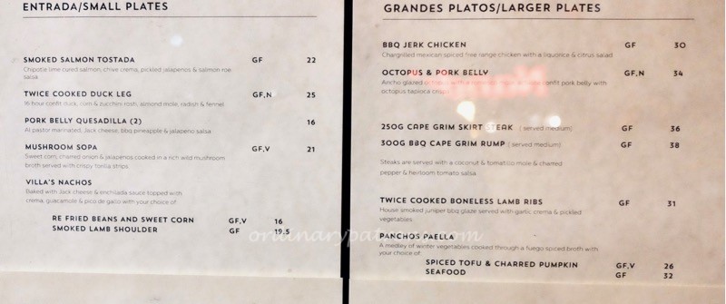 Here are pictures of some pages from the Pancho Villa Hobart Menu. There were a couple of tasting menus at either A$50 or A$65 per person. ย We decided to pick our own dishes.