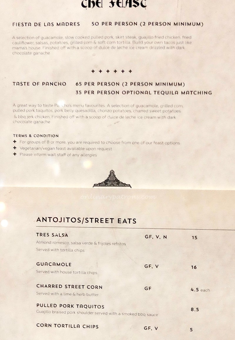 Pancho Villa Hobart Menu