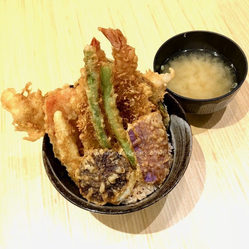 The Akimitsu Signature Tendon looked impressive when it arrived. I like tendon bowls served in this way when the food is stuffed into the bowl till it is almost overflowing. I had opted for a traditional (non-spicy) sauce. A bowl of miso soup accompanies the rice.