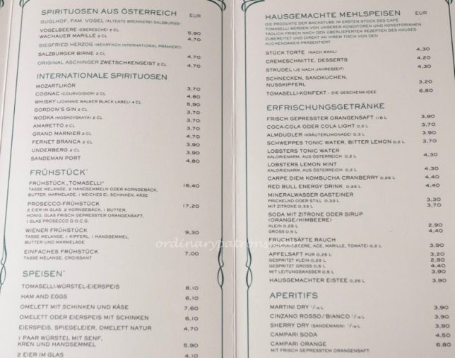 One new thing we learnt at Salzburg was the tradition of waitresses serving cake. They are referred to as “Kuchendamen” and walk to tables carrying trays of pastries. They also seem to have their own set of accounts as we pay them separately from the bill for the rest of the food and drinks. The Tomaselli Café is the last in Salzburg to preserve this tradition. This is how they describe the tradition: “The Kuchendamen” are Tomaselli’s charming “temptresses”. Without so much as a second glance, they know exactly which clients have already been served a coffee and are longing for a sweet accompaniment. “
