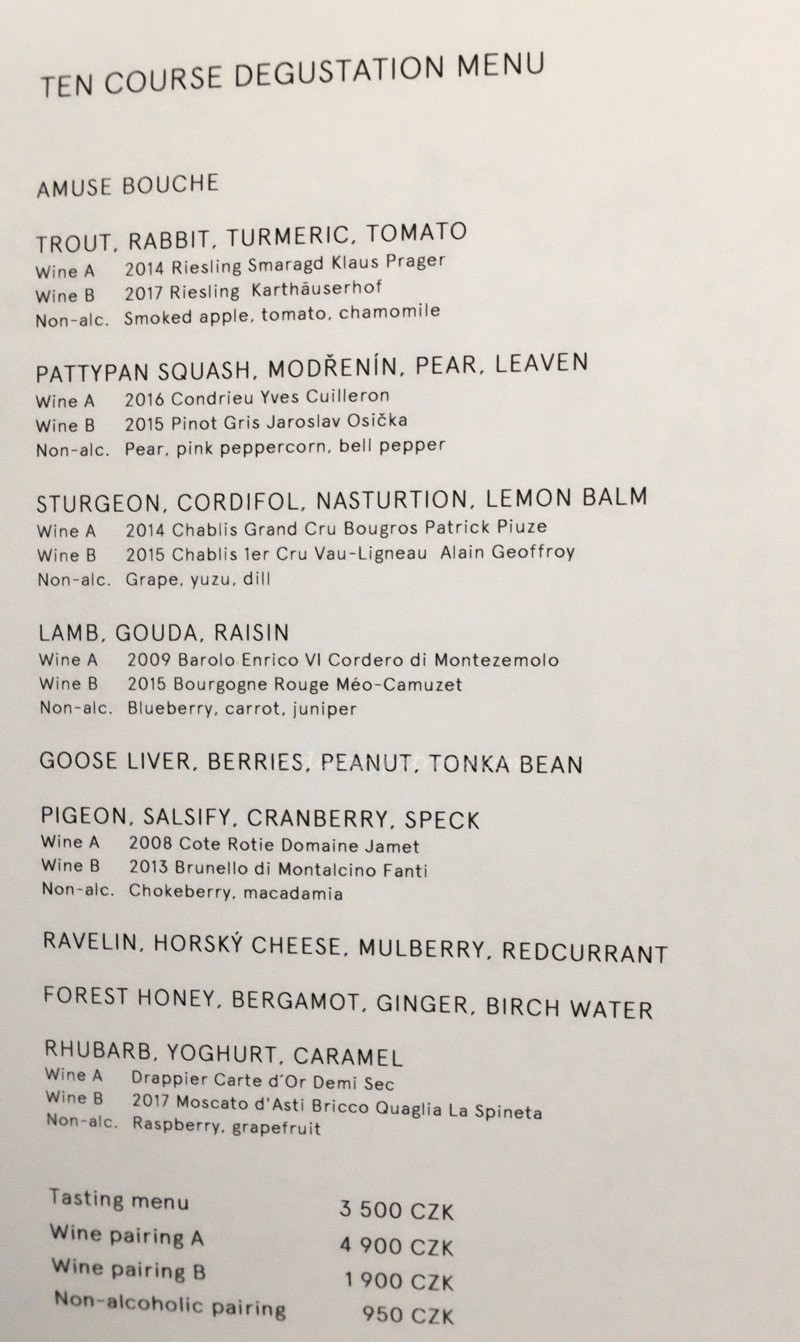 The Goose liver, wine spirit, cherry, pistachio (490 CZK) was the plainest dish but was the most memorable dish of the day. This piece of toast with liver had wonderful flavours.