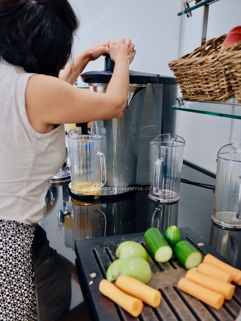 Here are pictures of the healthy corner and some of our creations. Fresh fruits, vegetables, seeds, nuts and other healthy food were made available at the corner. We could specify the vegetables and fruits to be combined to make the healthy juice of choice.