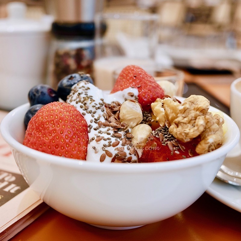 Our final restaurant in the list of nice restaurants near Jewish Quarter Prague is the breakfast restaurant at the Josef Hotel. It is a bright modern restaurant looking out into the garden. It has the usual breakfast buffet that is offered at hotels. What made this stand out were two stations – the healthy corner and the hot breakfast menu.
