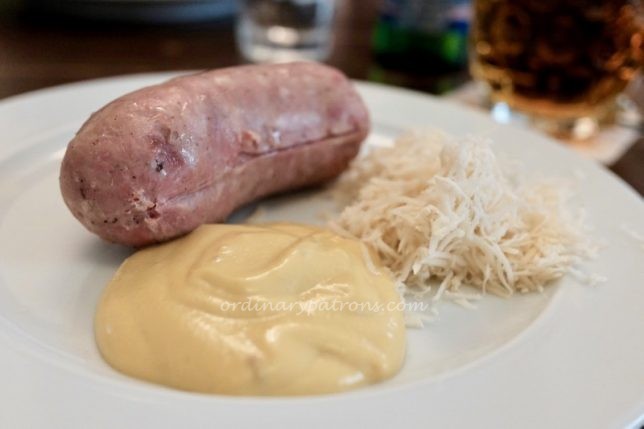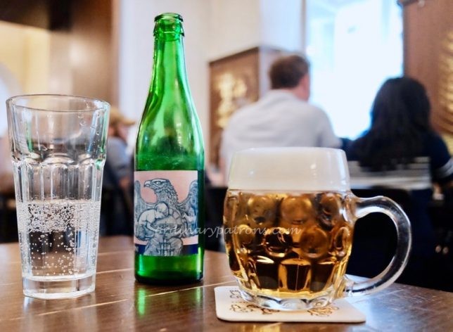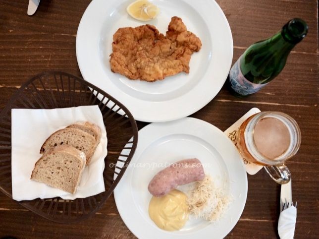 Here is a picture of the Lokál Dlouhááá menu. Our simple lunch of pork schnitzel, “Talián” sausage, with grated horseradish and mustard and drinks cost a total of 365 CZK (about S$22).