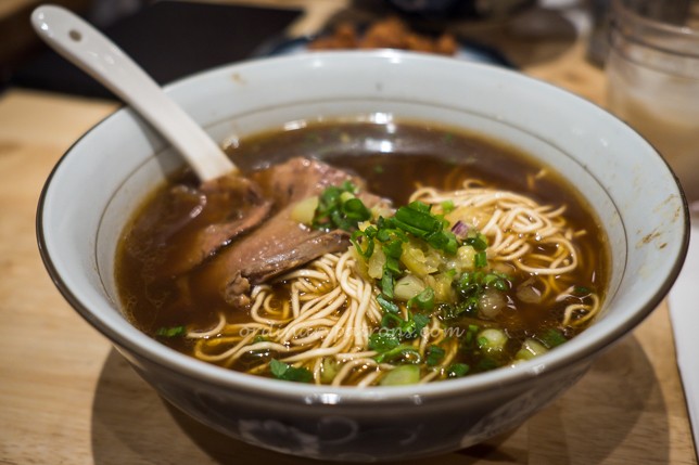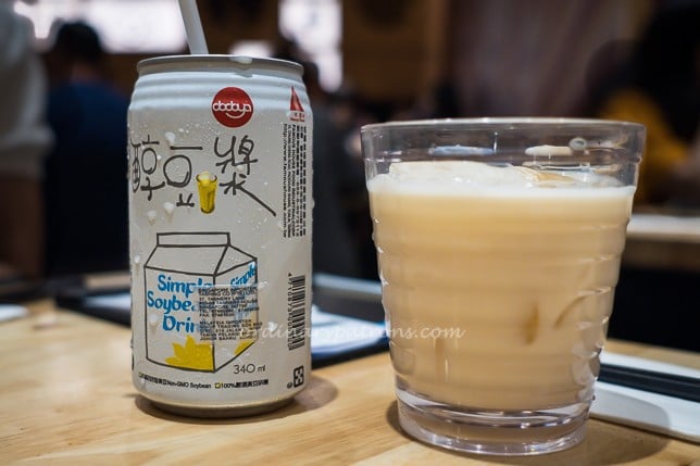 We ordered Braised Beef Shank Noodles ($12.50) with the traditional la mian as well as the Pork Chop Vegetable Noodle ($10.90) opting for the rice noodles (or kway teow). Having forgotten that LeNu’s Taiwanese Soy Milk ($2.30) would come in the form of canned drink, we ordered it again.