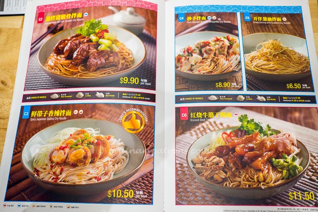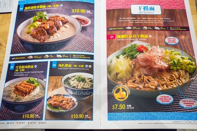 Lenu still serves Taiwanese noodles in broth that involves over 12 hours of preparation. You can still choose the variety of noodles you like and decide on the type of soup for your noodles. However, Chef Wai, whoever he is, has introduced chicken, seafood and a selection of side dishes to the menu. A Straits Times article suggested that the menu was “inspired by Chef Wai’s travels to China and Taiwan”. Below are pictures of various sections of the menu of LeNu Chef Wai’s Noodle Bar.