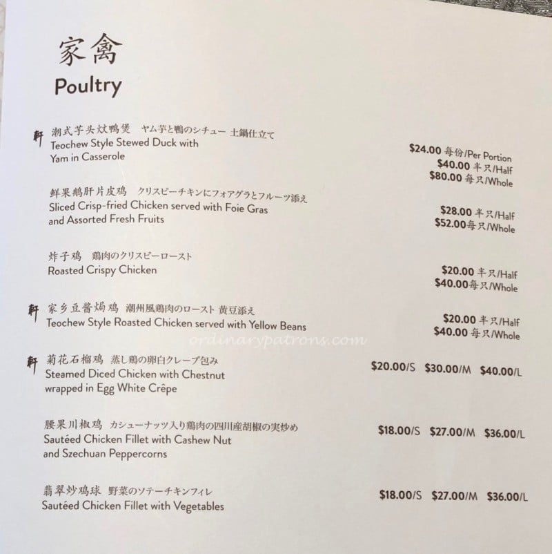 The Paradise Teochew Vivo City menu shares many common items with the one at Scotts Square, but we were informed that there is a wider food selection at Vivo City. We ordered a selection of HK dim sum items (which enjoy a 30% discount) and a couple of a la carte items.