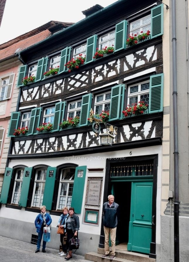 Our appetites were not as robust by the time we had our second lunch. We had beer with some Nuremberg sausages and coffee at Eckerts. The food at Eckerts was not bad but the atmosphere was not as unique. I think its exterior was more attractive than the interior. The two historic restaurants in Bamberg were some of the many beautiful buildings we saw at Bamberg.