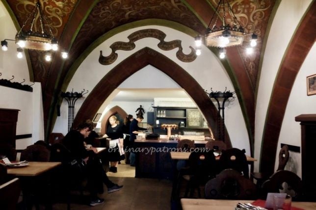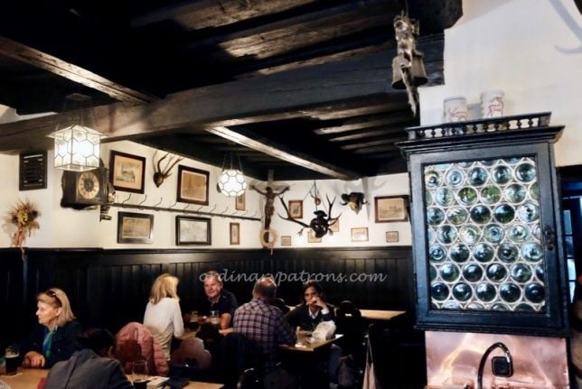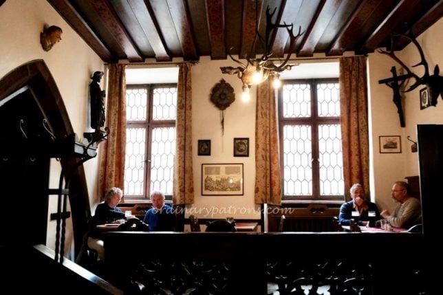 The Schlenkeria tavern looked very much like what we would expect a historic German tradition to be. The atmosphere was serious with lots of dark, heavy wood. The walls are lined with paintings and hunting trophies.
