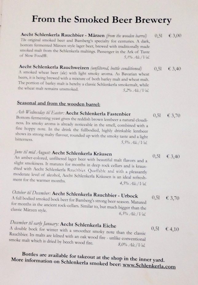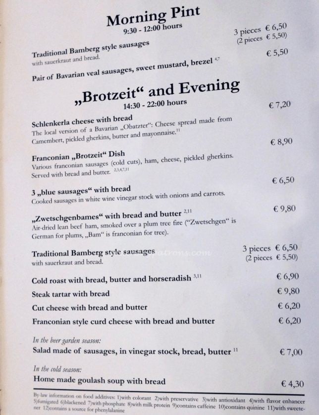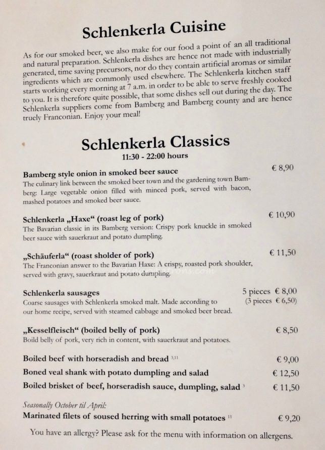 Being the first of two unique restaurants in Bamberg that we were planning to have meals in that day, we made it a point to eat as light as possible, to leave space for the second restaurant. Our main focus at Schlenkeria was the smoke beer, but it turned out that the food choices were quite tempting as well.