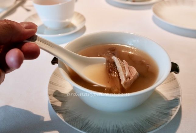 The soup of the day was a vegetable soup. It was followed by steamed seabass with red dates. It was a delicate dish, with lightly