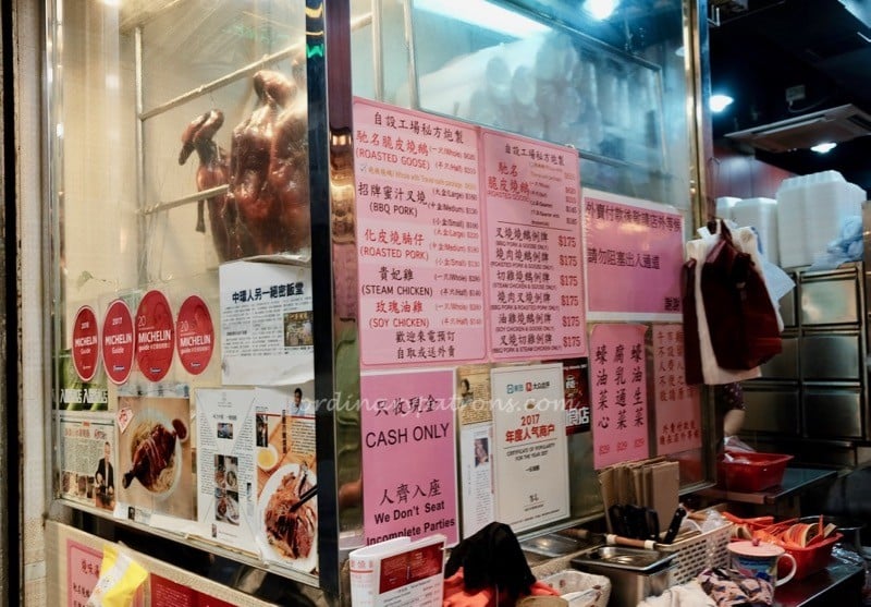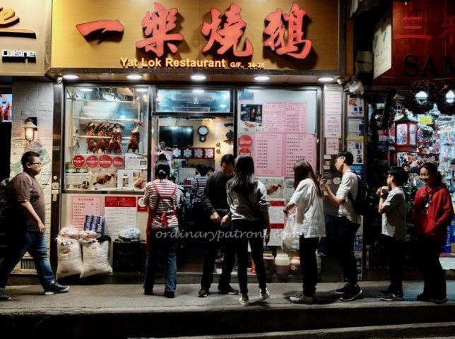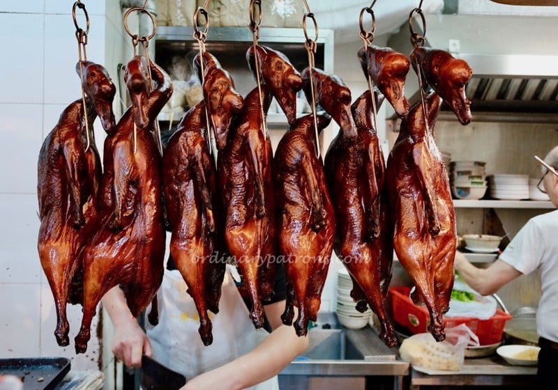 Perhaps it is a case of the forbidden fruit. Many friends we know make a beeline for roast goose whenever they are in Hong Kong. It is hard to find roast goose in Singapore as the import of goose into Singapore is strictly regulated. According to a Straits Times story, there are still a few places to eat roast goose in Singapore. Many Singaporeans get their roast goose fix whenever they are in Hong Kong. Yung Kee, Kam’s Roast and Yat Lok are places that often come to mind. The latter two have received one Michelin star each in the Michelin Guide 2019. We decided to go to Yat Lok Roast Goose HK at Stanley Street to try their goose and roast pork. Yat Lok has been run by the Chu family since 1957 and at this Central HK location since 2011.