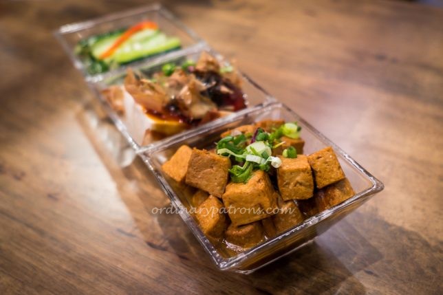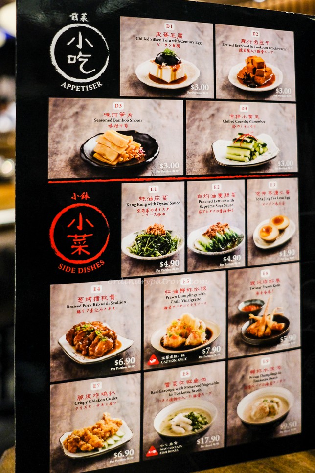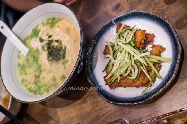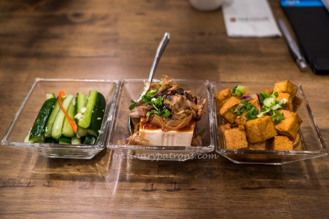 We tried these side dishes – chilled crunchy cucumber, chilled silken tofu with century egg and braised beancurd in tonkotsu broth. The latter was a warm dish. The other two were chilled and refreshing. We were glad to have ordered them as some of the noodles took some time to be served.