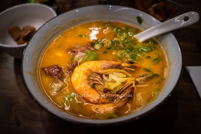 The big prawns braised pork rib ramen ($17.90) was the fastest to be served. Like the other noodles, it was a substantial portion. The Paradise Shrimp Ramen was served in a large bowl which was packed full of noodles and accompanying ingredients. It could easily be adequate for two diners with a light appetite. The broth was rich and heavy. It reminded us of local prawn mee, especially with the prawns and pork ribs as toppings. We liked the pork ribs which were cooked till very soft. We were less fond of the prawns which, although large, were not very firm in texture.