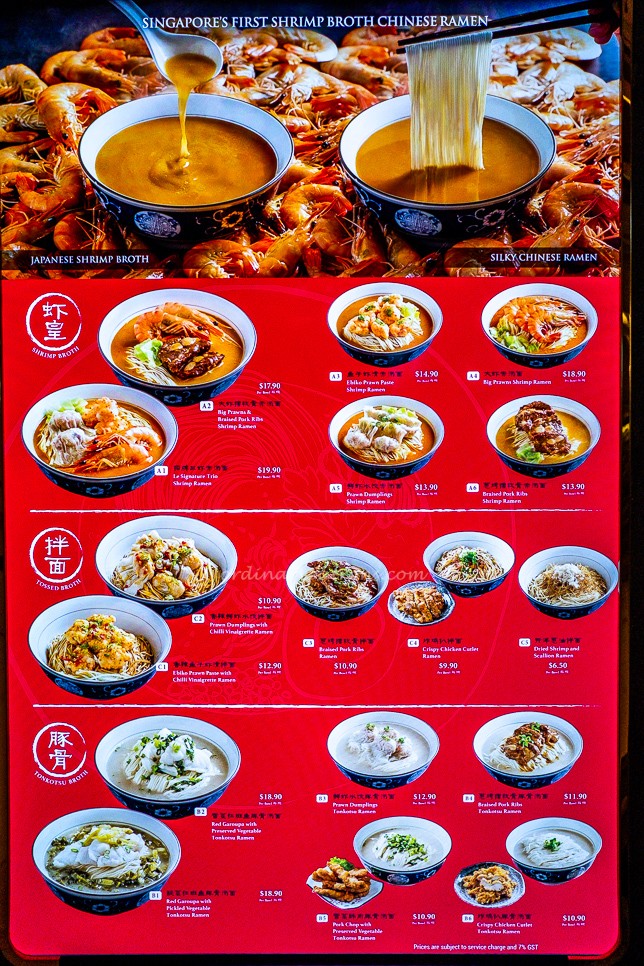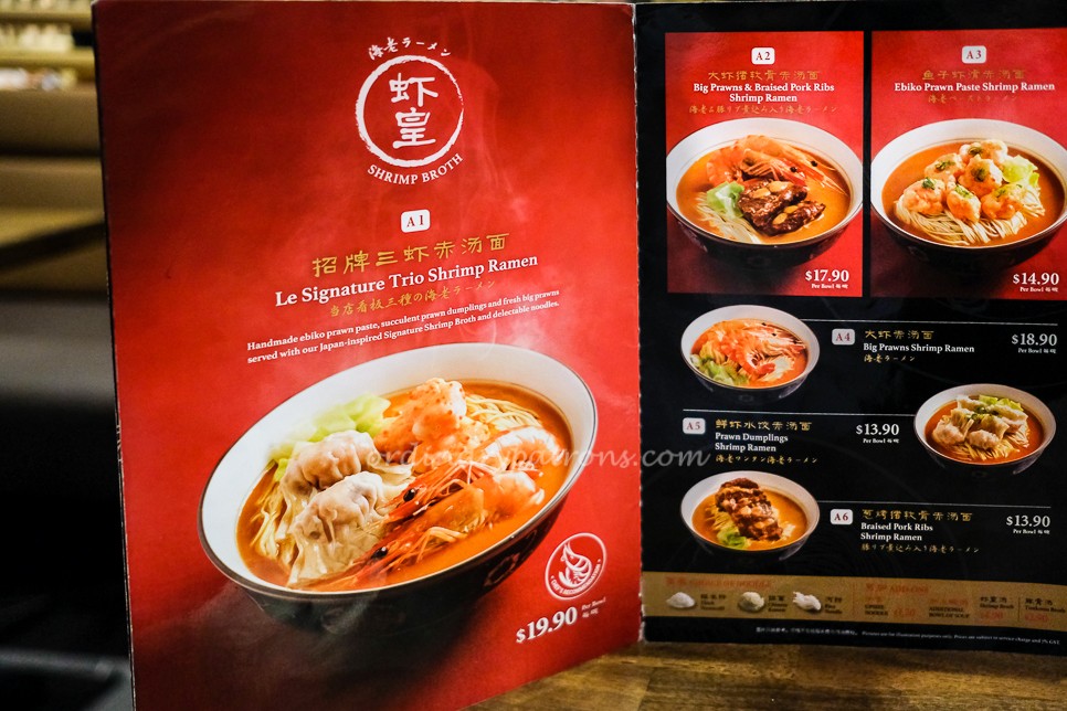 Here are pictures of some portions of the Le Shrimp Ramen Paragon menu. As expected, noodles take up most of the space in the menu, together