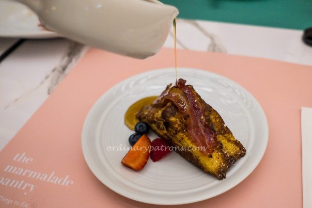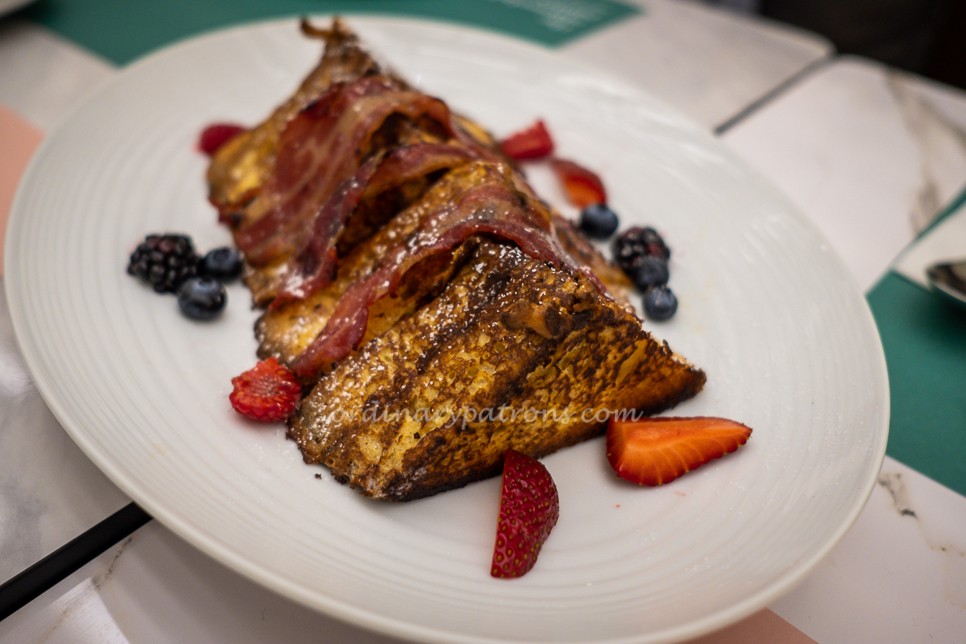 Our brunch started off well and on a sweet note with the Marmalade French Toast ($22). Eight thick slices of toast combined so well with the strips of bacon and fruits. The overall portion size was generous but we wished there were more fruits.