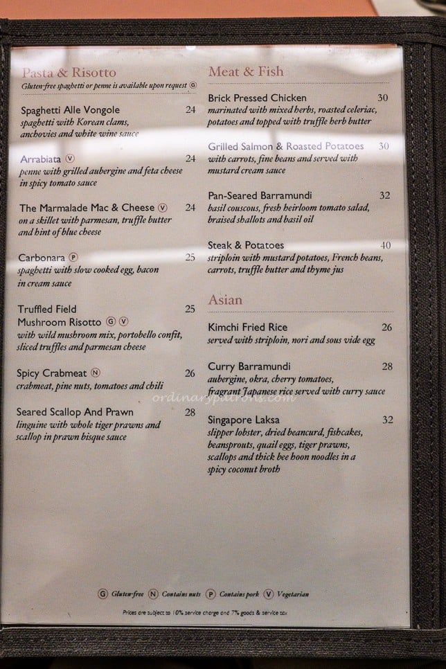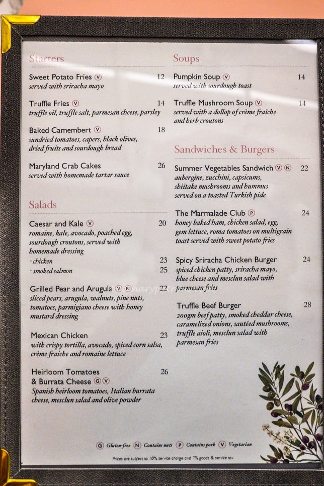 Here are pictures of the Marmalade Pantry Ion Orchard menu. It contains the usual Western all-day dining items like sandwiches, burgers and pasta, with a few Asian items such as Singapore laksa.