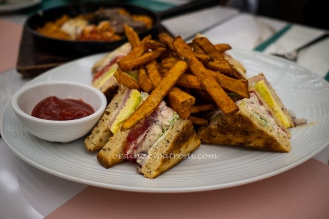 The Marmalade Club Sandwich ($24) was also a large dish that could be easily shared by two persons. Toasted wholemeal bread with egg, chicken salad, vegetables etc. The generous amount of sweet potato fries was appreciated by us.