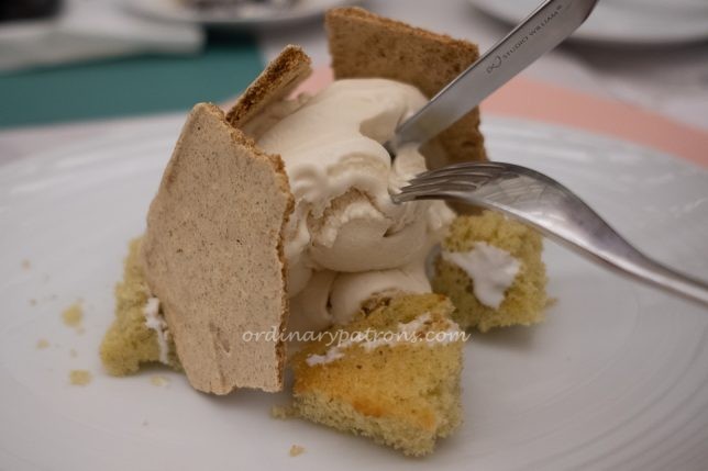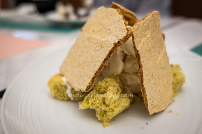 For dessert, we tried the Reimagined Kaya Toast ($14), a creation by Genevieve Lee, and the Smore ($5). The kaya toast looks like a scale model of Stonehenge. It is said to be pistachio sponge, coconut cream, brown toast meringue shards and Cold Stone Creameryยฎโs gula