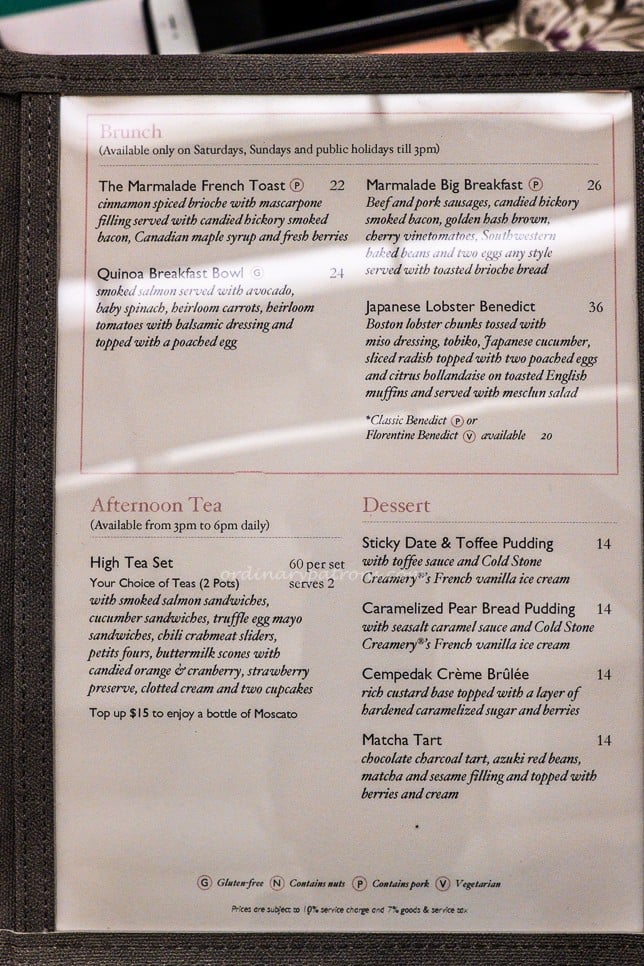 We had brunch recently at the new Marmalade Pantry Ion Orchard. It has moved up one level to level 4 of the Ion Orchard mall where it now has two sections – a regular restaurant space and a dining area in the atrium space. It is a new and improved version of the previous Marmalade Pantry. We were also pleasantly surprised to see the photo of Genevieve Lee (the runner up in MasterChef Singapore competition) on the menu which lists some of her dessert creations.