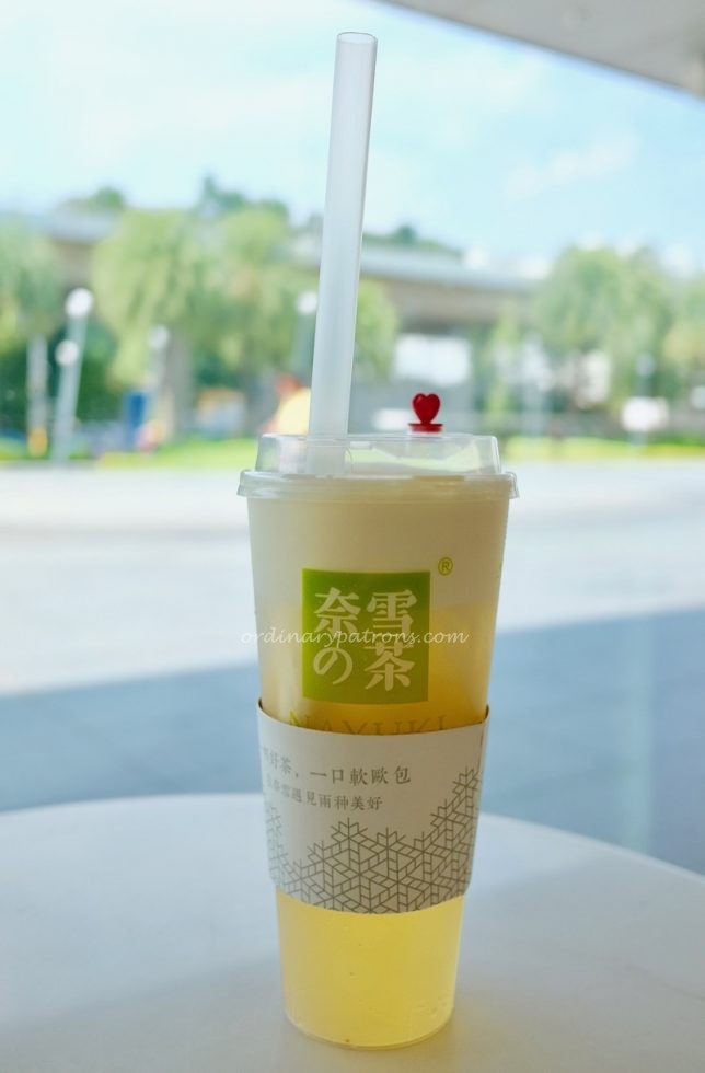 In addition to the bread, the other attraction at Nayuki VivoCity was the tea selection – supreme fruit tea, cheese tea pearl milk tea and cheese fruit tea. What caught our eye were the cheese teas. Cheese and tea sounds like a weird combination. But we saw so many customers going for it. So many people can’t be wrong, right? We decided to try the most basic one – Cheese Jasmine Tippy Tea ($4.50) to go with the cutest bun – silly choco sesame ($3).