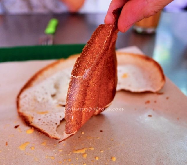 Other snacks are available such as the vadai (above pic) – similar to doughnut or ‘hum chim peng’ and the delightful appam (pic below). Appam is made from rice batter and milk. It is only toasted on one side leaving a delicate soft side and crispy brown on the other.