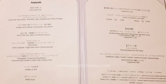 Dining at La Baie was straightforward. There was only one lunch menu that costs 7.500 Yen per person, with options to add a course or to switch dishes with supplemental add-on costs. We stuck to the orginal course which was more than adequate for us.
