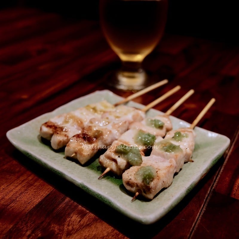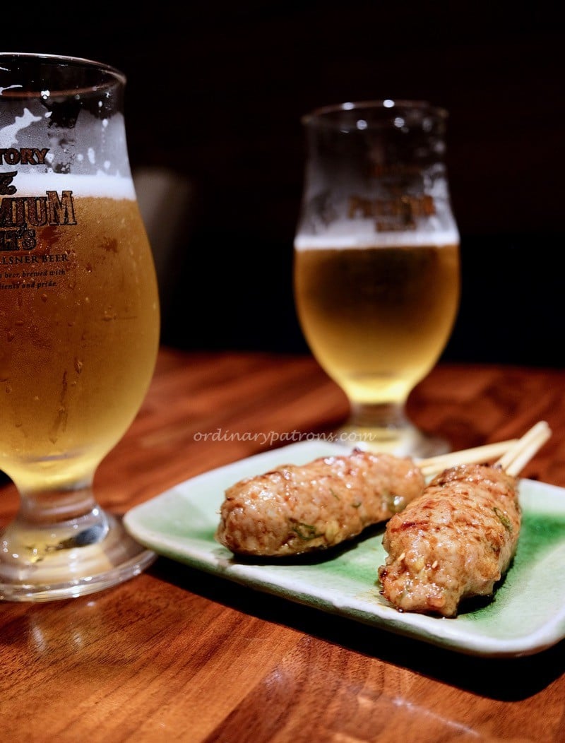 There are many quaint yakitori places in the narrow streets of Namba old town in Osaka, but we came across a modern izakaya specialising in the grilled chicken skewers – Gonbei Yakitori in the Namba Parks mall (็ญ็ซ็ผ้ณฅ ๆจฉๅ ต่ก ใชใใฐใใผใฏในๅบ). Gonbei, founded in 1978, has seven stores in Osaka. According to the English translation on the website, it “… is a full-scale charcoal grilled chicken specialty store that uses Kamitobi charcoal”.