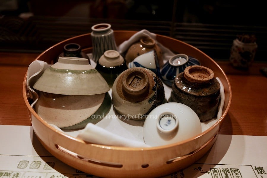 We decided to try some hot sake with the hot dishes that were to follow. A selection of sake cups were offered to us (no such choice was made available for the cold sake which were served in generic clear glass cups).