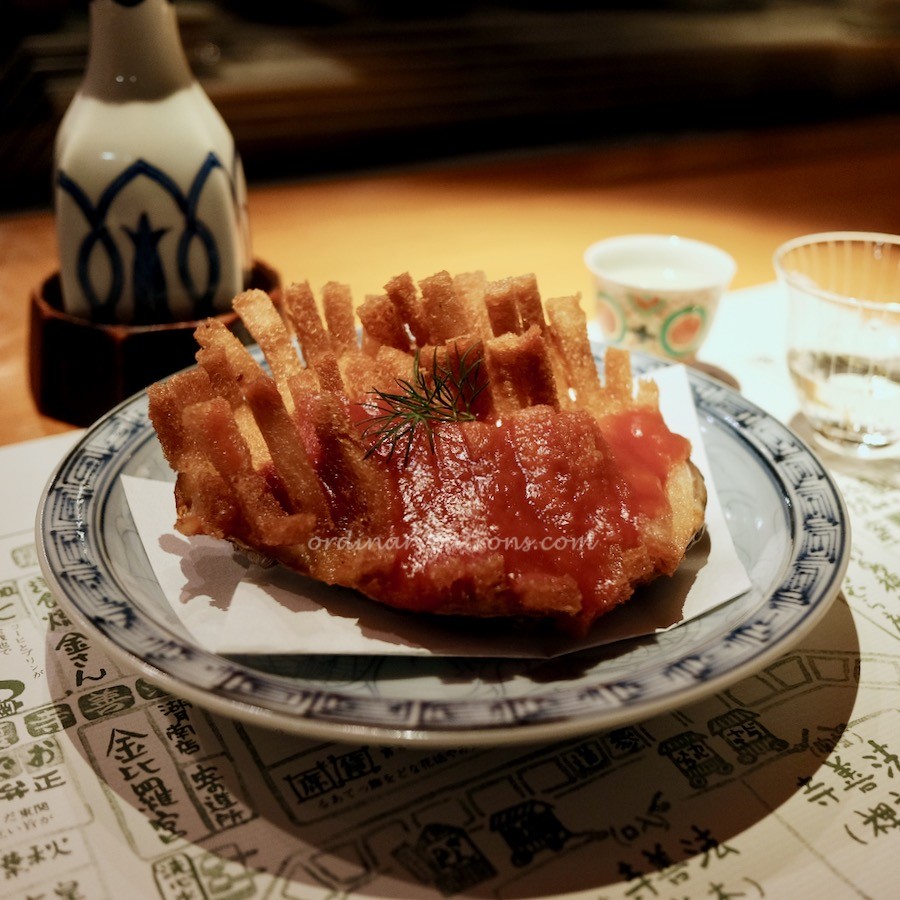 The cooked tongue of pig and asparagus was a dish that was only available with the 8,000 Yen menu. It tasted better than its description. The tongue was cooked till it was soft. It had no porky taste and was very good.