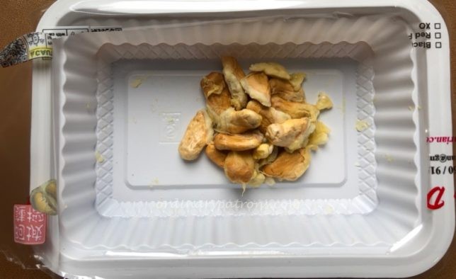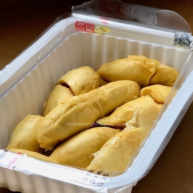 The flesh of the gang hai durians from Ah Seng Durian Ghim Moh Market were dry to the touch. It does not have a strong smell or taste. Just creamy with a mildly sweet pleasant taste. I think this would be a good durian to try for beginners. Hard core durian eaters seeking powerful flavours may be disappointed. Durians are sometimes likened to cheese – you either hate or love that smell. And sometimes it is an acquired taste. The gang hai durian was like brie cheese. Soft gentle flavours with a smooth creamy texture. The total cost of our two durians was $19. We would buy these again but would probably mix them with something stronger for a contrast in flavours.