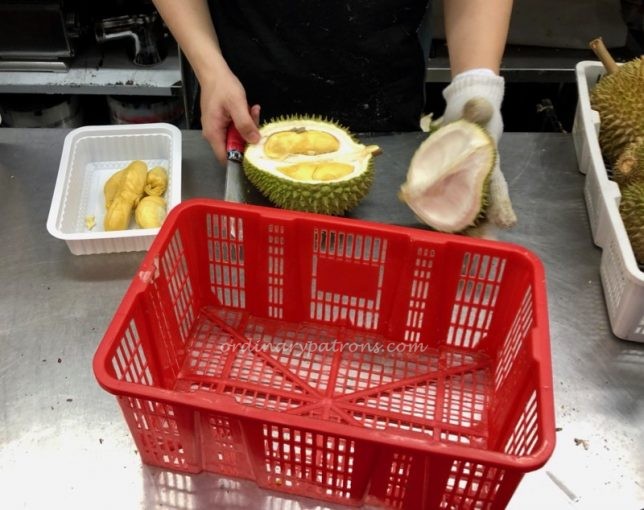 The next stop was the durian opener – he expertly opened our durians and placed the fruits into a plastic container.