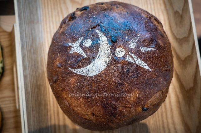 We bought two pieces of the spring blossom ($2 each). We were enticed by the smell of the spring onions which we have not seen used in this way before. This is a very light bread and unique tasting bread. Would we buy this again? Yes.